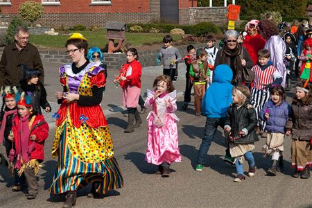 Onder een stralende zon trokken de kinderen en leerkrachten van De Springplank in Eversel vanmiddag in stoet door de straten. De sfeer zat er in van bij het vertrek. (meer foto's van August Ischen en Jan Aerts) 7037