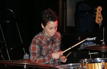 Impulse, een alternatieve muziekschool, waar je muziek - gitaar, piano en drums - kunt leren spelen volgens eigen wensen - is sinds 2 jaar gevestigd in Muze. Daar lijken kleine David La Mella's op de drums en gitaarvirtuozen op de gitaar in de maak, waar gevestigde waarden misschien nog stevige concurrentie van krijgen over enkele jaren. De aankomende talenten lieten zich samen met hun leerkrachten vanmiddag horen tijdens een coffee & cake-afternoon in de balzaal. (meer foto's van Ria De Clerck)19911