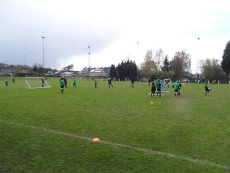 Meer dan 50 jonge voetballertjes nemen deze week deel aan het voetbalkamp dat SK Heusden 06 en Soccer Arena Genk op de Noordberm organiseren. Gediplomeerde trainers halen alles uit de kast om de jongeren techniek bij te brengen. Tussendoor beleven ze ook pret en spelen partijtjes onder legendarische pseudoniemen als Juventus, Barcelona en Ajax. Daarbij moeten bij momenten ook stevige aprilse grillen getrotseerd worden - terwijl de ouders schuilen in de tribune - maar toekomstige toppers geven daar niet om. (meer foto's van Julien Maebe)24879