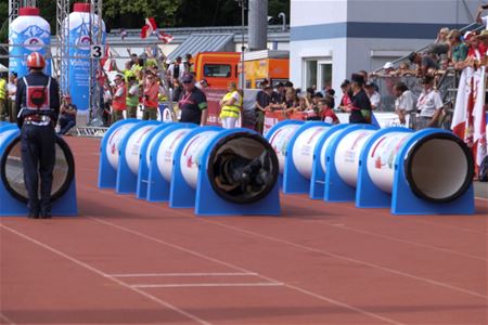 Een ploeg van Heusden-Zolder nam deel van de vierjaarlijkse brandweerolympiade in het Oostenrijkse Villach. Met goede trainingstijden in het achterhoofd waren de verwachtingen hooggespannen. De wedstrijd bestaat uit twee delen: enerzijds een pomp aansluiten op een fictief waterpunt en een aanvalslijn uitleggen naar een fictief vuur en anderzijds een estafette met hindernissen waaronder een koker. Daarbij geldt uiteraard de tijd maar ook de strafpunten die bij elke fout worden toegekend. Heusden-Zolder realiseerde een uitstekende tijd, maar de jury was het niet eens over het juist koppelen van de korf. De hoofdjury werd erbij gehaald en die gaf 20 seconden straftijd, weg dromen dus. En ook de ploeg van Hasselt kende veel pech in de wedstrijd, waardoor ook zij het niet kon waarmaken in haar categorie. (foto's Martine Santermans)34904