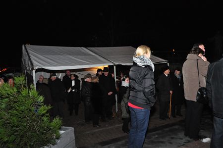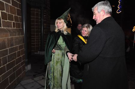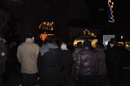 Vanavond zijn volgens de traditie de lichtjes in de kerstboom ontstoken, deze keer aan de kerk van Zolder-Centrum, door delegaties van de partnersteden. Na een adventsviering in de kerk, werden de gasten toegesproken door schepen Nanda Van Ende - geflankeerd door haar collega Mario Borremans - en burgemeester Schwere van Brilon, die de kerst- en eindejaarswensen van zijn bevolking overbracht aan Heusden-Zolder. Een jongerenblaaskapel uit Brilon zorgde voor de sfeermuziek en ook de 'woudfee' was present. De gasten uit Brilon serveerden glühwein en koekjes, en de dorpsraad van Zolder had erwtensoep bereid, en dat was met de koude erg welkom. Ondertussen heeft deze adventsviering alvast een positief resultaat opgeleverd, want vanavond zijn de eerste stappen gezet voor een verbroedering tussen de Rode Kruisafdelingen van Heusden-Zolder en Brilon. (foto's Dimitri Reynders)12036