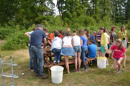 Vanmorgen waren de leerlingen van het zesde leerjaar van de vrije basisschool van Bolderberg druk aan het werk op domein Bovy. Ze bouwden aan de bijenhal samen met de imkers bijenhotelletjes. Die kunnen ze dan nadien thuis in de tuin zetten om er een mooi en veilig - ook voor de omgeving - onderkomen aan de bijtjes te bieden. Het maakt deel uit van het project BIJ-zonder landschap van het Regionaal Landschap Lage Kempen, waarbij in het voorjaar al 31 organisaties, landbouwers en scholen 43 ha akkers met bijvriendelijke bloemenmengsels hadden ingezaaid. Op Bovy ligt trouwens ook zo'n perceel. Er waren dringend maatregelen nodig om de bijen voldoende levenskansen te geven, want ze zijn onmisbaar in de natuur. Dat kwam ook gedeputeerde voor natuur en leefmilieu Ludwig Vandenhove nog eens onderlijnen op Bovy. Op dit moment gebeuren er in Limburg heel wat initiatieven rond bijen, en de gedeputeerde laat ze allemaal in kaart brengen. (meer foto's)16439