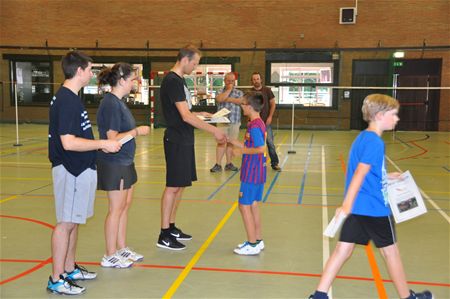 Badmintonclub Smash organiseerde deze week in samenwerking met de gemeentelijke sportdienst een badmintonkamp. Daarvoor schreven 19 kinderen in, allemaal voor een eerste kennismaking met de sport. Vandaag kwam schepen van sport Robin Stroobants de diploma's uitreiken en de schepen klopte zelf ook zijn 'pluimpje' mee. Trouwens, Smash lanceert dit seizoen de badmintonprikkels, waarbij kinderen van 5 tot 9 spelenderwijs de sport onder de knie krijgen. Daarvoor kunnen ze iedere woensdag van 17u30 tot 19 uur terecht in de sporthal Berkenbos. Voor de andere jeugd zijn er startersgroepen op dinsdag van 16u30 tot 18 uur en op donderdag van 17 tot 18 uur. Elke nieuwe speler mag 3 keer gratis komen meetrainen. www.smashbc.com