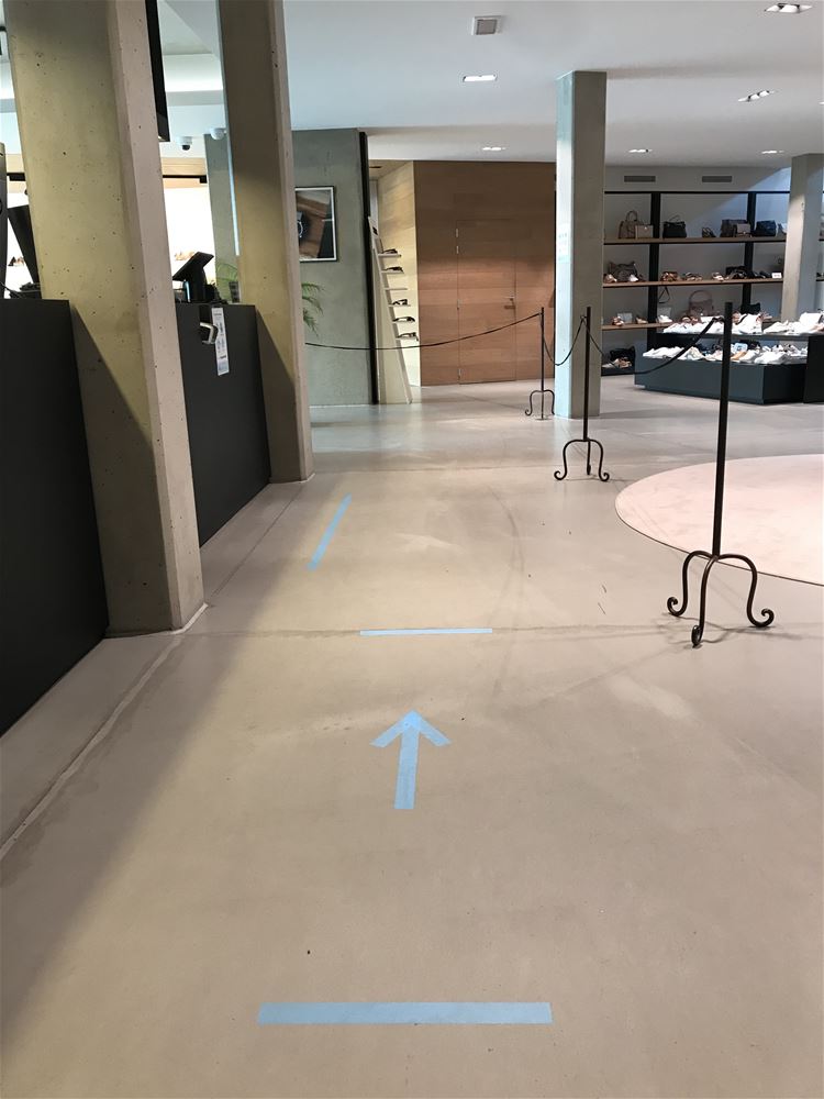 Bij Lorenz Shoes & Fashion in de Guido Gezellelaan is ook een looprichting gemaakt in de winkel, waardoor zeker ook aan de toegang de kruisende klanten van elkaar gescheiden worden. De desinfecterende gel voor klanten en personeel staat klaar. Verder zijn de medewerkers verplicht om een mondmasker te dragen en zullen ze de handen na elke handeling moeten desinfecteren. Aan de kassa is een wachtrij gemaakt, ook daar kan de 1,5 meter gerespecteerd worden. De paskamers zijn gehalveerd en zullen na elk gebruik gedesinfecteerd worden. De kleding zal na het passen gestoomd worden en dus ook gedesinfecteerd.
