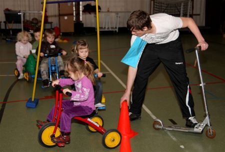 De dienst sport organiseert vandaag een kleuterinstuif in de sporthal van Zolder. Die is omgetoverd tot speelparadijs waar de kleuters naar hartelust kunnen dansen, turnen, springen op een springkasteel, autorijden en fietsen, rollen met grote ballen en zelfs spelen met een parachute. En dat kinderen dit graag doen, blijkt aan het groot aantal deelnemers, zowel in de voormiddag (de kleinsten) als de namiddag waren er 75 kinderen.4368