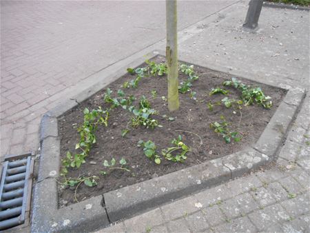 De Kleuterweg kleurt eindelijk wat meer groen. De vroegere beplanting was al jaren uitgestorven en de vrijgekomen ruimte werd gretig gebruikt om wekelijks niet reglementaire vuilniszakken te dumpen. Vanmorgen was een ploeg van Alternatief volop bezig de perkjes rondom de bomen te beplanten met bodembedekkers. Hopelijk houden die lang stand. Nu nog de permanente vervuiling van het hoekperceel Kleuterweg/Schansstraat een halt toeroepen … (foto's Gilbert Vanutte)