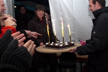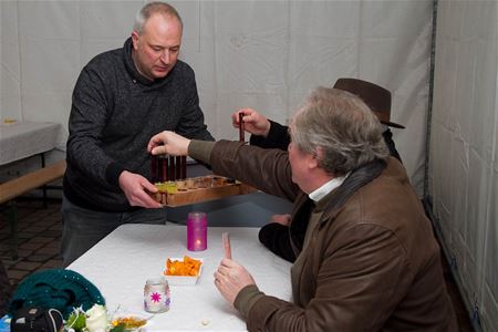 In de Padbroekweg waren ze zaterdagavond al aan hun 5de nieuwjaarsreceptie toe. De stemming gaat er ieder jaar crescendo, ook nu weer heel wat vloeibaars en eetbaars. Het duurde daar tot in de vroege uurtjes en blijkbaar wonen de specialisten 'pietjesbak' in de Padbroekweg. (foto's Gust Ischen)18285