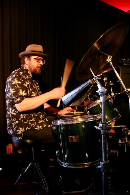 Gisteravond kreeg het Muzecafé het nieuwste project van Carlo Nardozza geserveerd: 'Latimotion'. Samen met Lieven Cambré, Rob VanSpauwen, Tim Finoulst en Patrick Kessels bracht hij in 2 sets van 40 minuten een mix latin en jazz. Voortdurend werd je weer verrast door het soms opzwepende ritme, een virtuele verplaatsing naar zuiderse landen waar onze huidige temperaturen heel normaal zijn. In zulke omstandigheden houdt niemand zijn achterste stil op zijn stoel. (meer foto's van Ria De Clerck)22301
