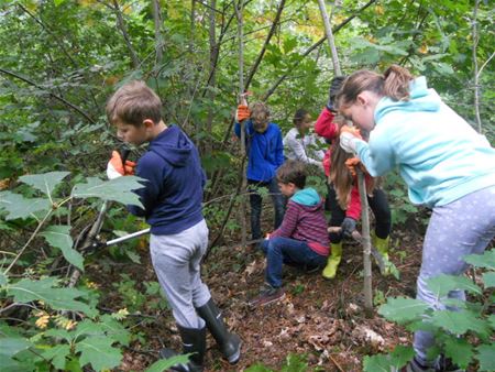 De leerlingen van het 5de leerjaar van 't Molenholleke steken Natuurpunt graag een handje toe bij het beheer van het bos. "Onze school ligt vlak in Zolder-centrum en biedt daardoor niet veel mogelijkheden om met de natuur in contact te komen. Daarom bieden wij deze initiatieven aan aan onze leerlingen. En elk jaar valt dat in de smaak," zeggen de juffen Katrien, Karen en Caroline.22819