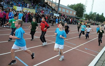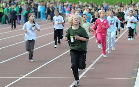 Op De Veen had vandaag de traditionele scholenveldloop plaats. De leerlingen van het eerste tot en met zesde leerjaar zetten daarbij hun beste beentje voor. Maar eerst kregen ze allemaal een aangepaste opwarmingsoefening aangeboden. En de allerbesten waren natuurlijk maar wat fier dat ze achteraf op het ereschavotje hun medaille in ontvangst mochten nemen. (meer foto's van Davy Neuteleers)11476