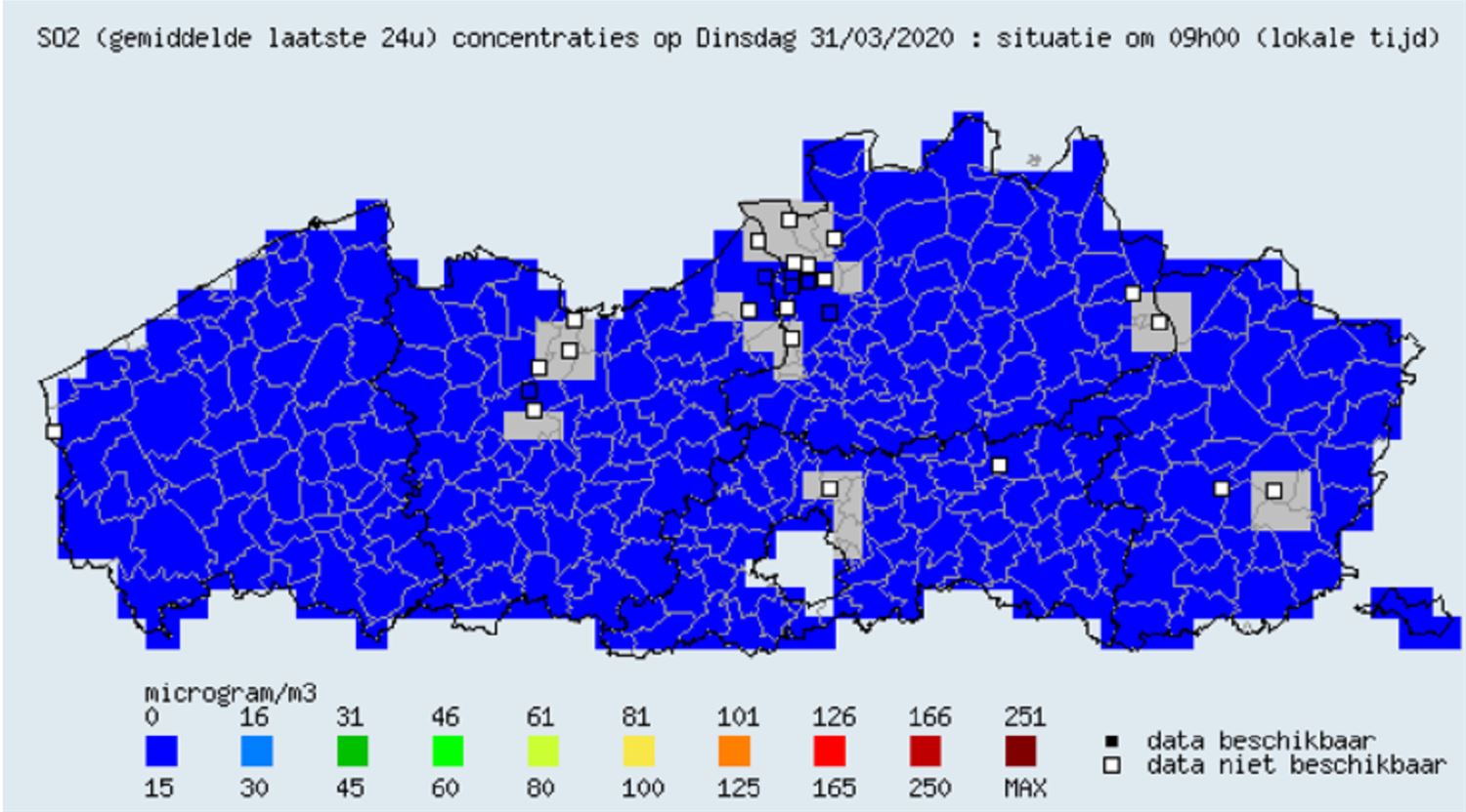 We hebben de afgelopen tijd met enkele foto's en een filmpje al getoond hoe het autoverkeer in Heusden-Zolder sinds de lockdown light enorm is teruggevallen. Ook in de rest van Vlaanderen is dat het geval en wordt er meer gefietst en gewandeld. Daardoor is de luchtkwaliteit enorm verbeterd. We zien dit aan de waarden van zwaveldioxide (SO2), stikstofdioxide (NO2) en fijn stof. De lucht is lange tijd niet meer zo zuiver geweest, dat merk je ook in onderstaande tabellen van 31 maart. De meest actuele gegevens kun je altijd bekijken via deze site. De Fietsersbond ziet er alleen maar redenen in om ook na de coronacrisis de korte afstanden binnen de gemeente te blijven overbruggen met de fiets. Wie aan de promotie daarvan wil meewerken kan mailen naar heusden-zolder