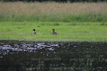 Ook door het stroomgebied in 'het broek' staat de Mangelbeek bijzonder hoog, bijna gelijk de oever de bruggetjes. De eendjes kunnen nu zelfs pootje baden in de weide langs de beek en de konijnen begrijpen niet goed wat er allemaal gebeurt. (foto's Marcel Gybels)27507
