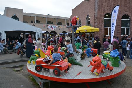 De Kermes 2016 aan de Selimiye moskee beleefde vandaag een topdag met een massa bezoekers. Die deden zich tegoed aan een brede waaier van Turkse specialiteiten en bezochten de kraampjes met kleding, boeken, geschenkartikelen, kookpotten, en het antiek van Zeki, naar eigen zeggen de eerste en enige Turkse antiquair in de streek. Hij verkoopt zijn 3 topstukken morgen openbaar voor het goede doel. Er was zelfs een infostand voor wie in Turkije nieuwe tandprothesen wil laten zetten. Voor de kinderen viel heel wat te beleven, ... dé attractie voor jong en oud dit jaar was de rodeo stier, waar zelfs de meest taaie berijder zich uiteindelijk gewonnen moest geven. SP.A-voorzitter John Crombez kwam vanmiddag langs, net als burgemeester en verschillende schepenen. De opbrengst van de Kermes gaat voor een deel naar Zimbabwe. In een droog gebied werden vorig jaar al waterputten gesponsord. Dit jaar is het er extra droog, in de aanloop naar de Ramadan zal vanuit de Selimiye moskee gezorgd worden dat de bevolking voedsel heeft voor de Iftar. Tweede doel is de verbouwing van de kelder onder de feestzaal bij de moskee. Daarin worden lokalen ondergebracht voor verschillende doeleinden zoals bijvoorbeeld voor het onderricht van de basiskennis islam. Ook zondag van 14 tot 20 uur is er nog de Kermes 2016, iedereen is welkom, reservatie is niet nodig. (meer foto's)27349