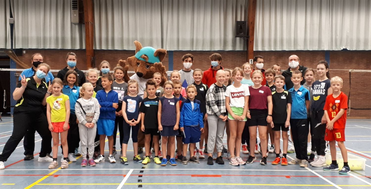 Badmintonclub Hebad Heusden blikt tevreden terug op de allereerste Shuttle Kids Day. In sporthal Olympia kwamen meer dan kinderen tussen 5 en 12 jaar proeven van de badmintonsport, maar dan verpakt in sport en spel. Ook mascotte Foxie was present. (foto's Hanne Put)61918