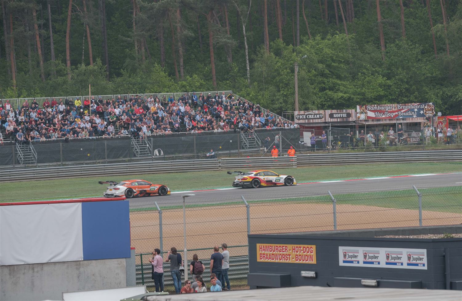 Vandaag was er duidelijk meer volk op Circuit Zolder dan gisteren en de tribunes waren behoorlijk gevuld. Gelukkig bleef het droog tijdens de DTL-race, later werd dat een heel ander verhaal. Het was de Duitser René Rast in een Audi die vandaag de snelste was. Hij won voor de Oostenrijkse BMW-rijder Phillip Eng, de winnaar van gisteren, en een andere Audi-rijder, de Brit Jamie Green. Ook nu moest de race weer een tijd geneutraliseerd worden. In de Porsche Carrera Cup Benelux hebben Limburger Dylan Derdaele en de Nederlander Max van Splunteren elk een manche gewonnen. (foto’s Ann Jordens)46840