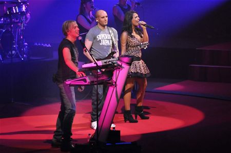 Milk Inc. heeft het weer gedaan gisteravond tijdens het eerste Eclipsconcert in het Sportpaleis: de tent doen ontploffen van de ambiance en vriend en tegenstander verbaast met een verrassende show. Een groot rond scherm scheen als een zon de 15.000 fans tegemoet, daar schoof een maan voor zodat een eclips ontstond. De planeten stonden tegen het plafond van het Sportpaleis en aan de voorkant begonnen sterren te fonkelen. Maar de echte sterren zijn natuurlijk Regi en Linda zelf, die de hits weer aan elkaar mochten rijgen, luidkeels meegebruld, met de handen in de hoogte. Gastvedetten waren er ook, vrij voorspelbaar Stan Van Samang en Sylver maar tot enorm plezier van heel de tent ook rapper Turbo B. van Snap! die het paleis helemaal in vuur en vlam zette. En dan moest nog de onvermijdelijke spektakelstunt komen: aan het eind werd een groot plateau als het ware uit het podium gelicht en met heel de band op zweefde dat over het publiek. Na de nodige bisnummers mocht het publiek naar huis zweven. Meer foto's van Ronny Vanthienen
