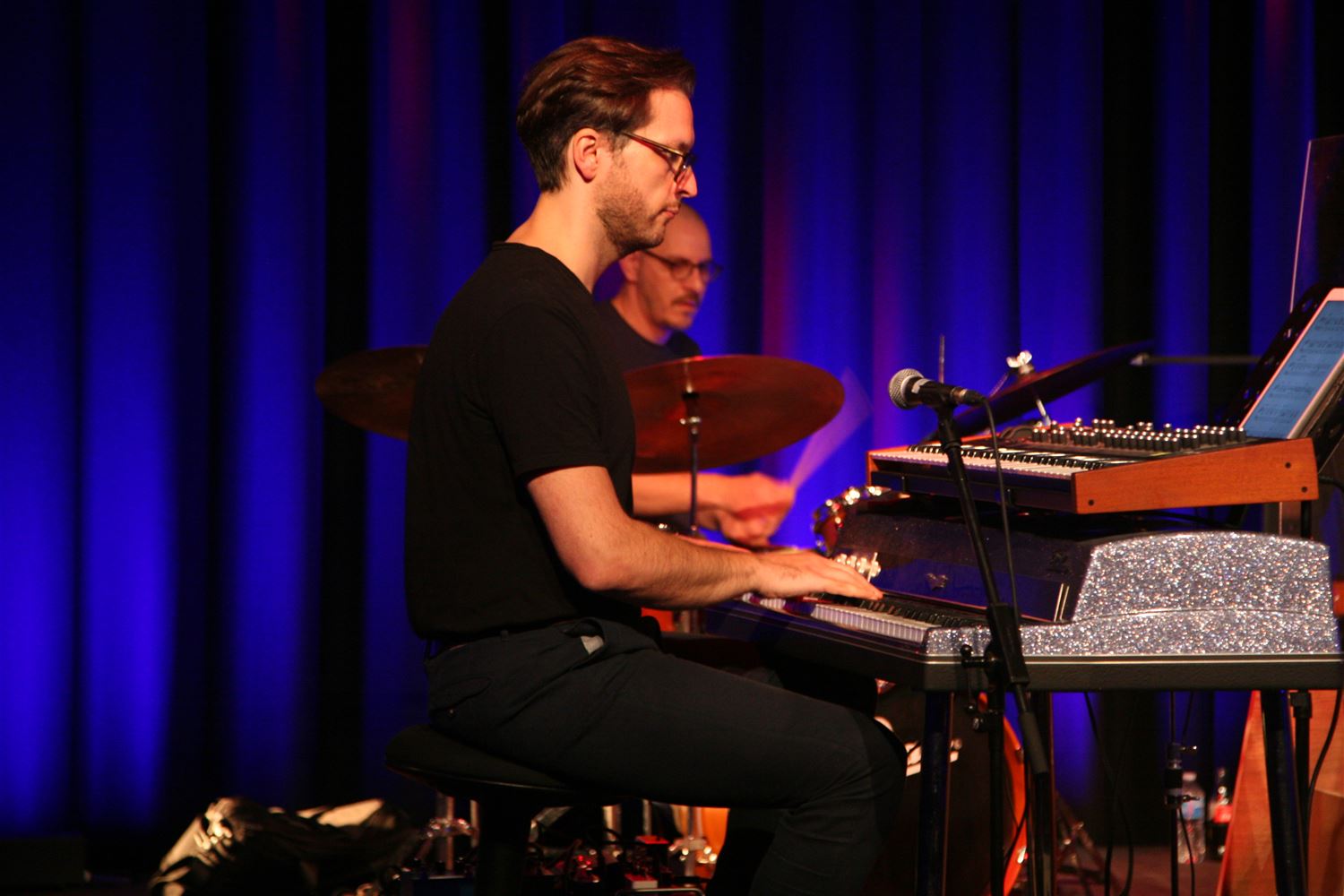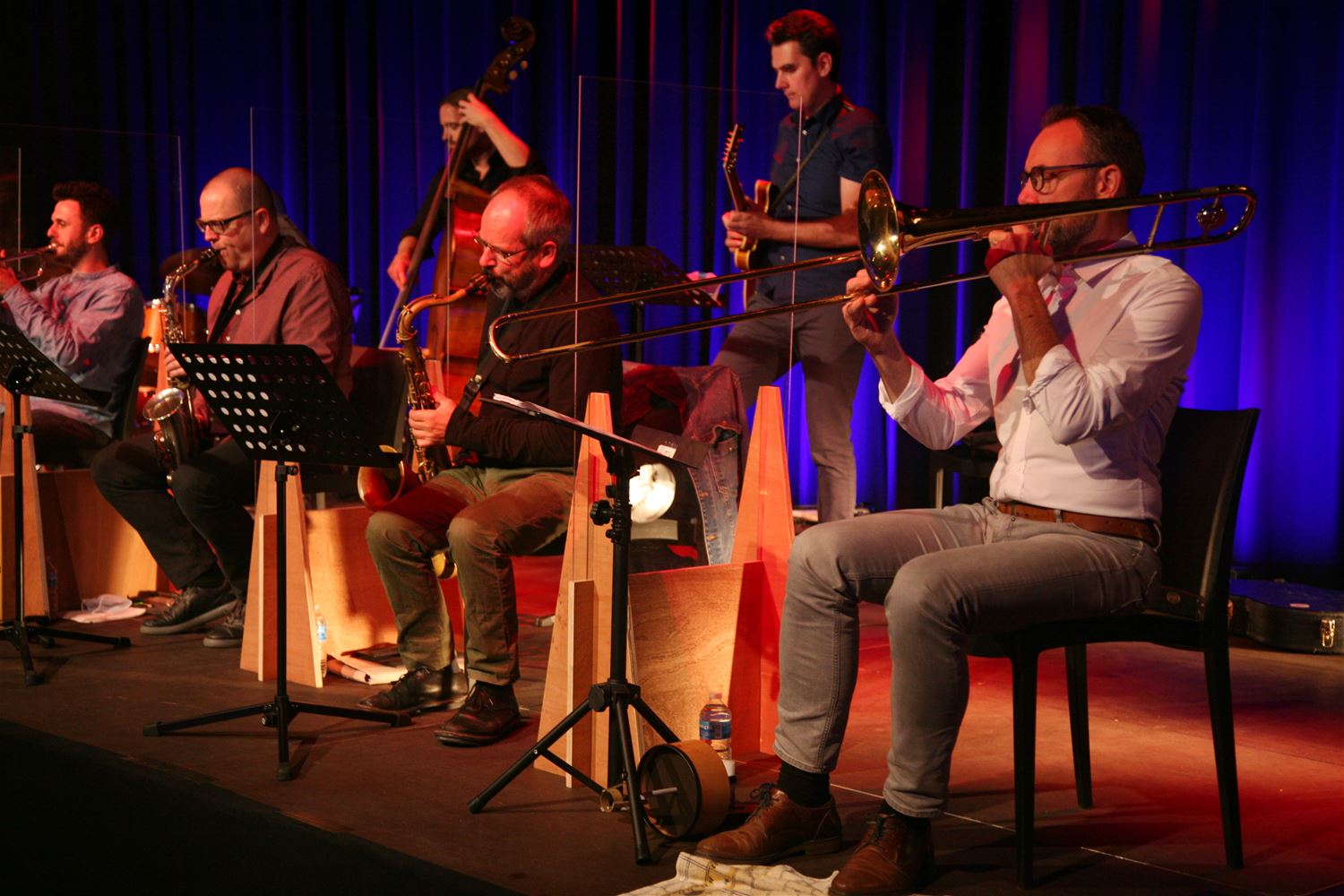 The Muze Jazz Orchestra is nog altijd bezig aan de reeks jubileumconcerten om zijn 10de verjaardag te vieren. Zondagavond was daarbij in de balzaal van CC Muze pianist-componist David Demuynck de centrale gast. Zijn muziek kreeg een eigen interpretatie van de MJO. (foto's Herman Eerdekens)
