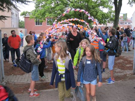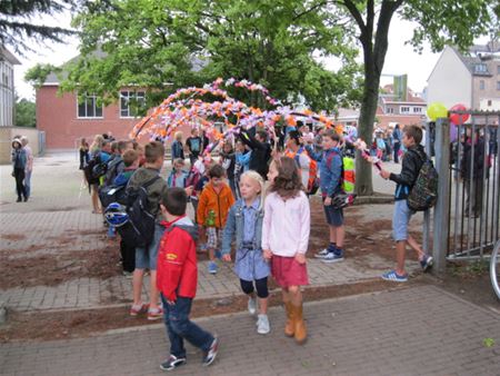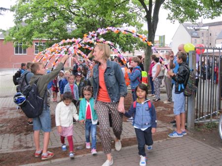 In 't Molenholleke was het vandaag een speciale eerste schooldag, vooral dan omwille van het intrekken in het voormalige CVO-gebouw. Niet alleen vergt die verhuizing heel wat aanpassing, verschillende klassen zitten daardoor in grotere lokalen met veel licht. Het gaat om een tijdelijke oplossing in afwachting van de nieuwbouw. Leerlingen die naar het eerste leerjaar gaan werden door de zesdejaars verwelkomd met erebogen. Na een toespraak door de directrice en een dansje kon het schooljaar echt van start gaan. (foto's Kurt Vanvelk)22535
