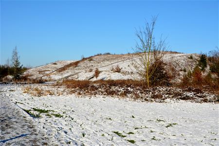De combinatie van het sneeuwlaagje met de zon en heldere lucht levert wel mooie beelden op van de mijnterril, maar veel wandelaars zijn er niet vandaag. Nogal wiedes, de vriestemperatuur en dunne wind maken het berekoud en daarnaast heeft het vannacht zo hard gevroren dat het op sommige plaatsen zelfs gevaarlijk glad is.18114