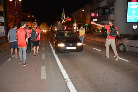 Midden in de nacht of niet, na de zuinige 1-0 zege van België tegen Zuid-Korea kwamen de voetbalsupporters in Heusden-Zolder opnieuw op straat. Weliswaar minder massaal dan de vorige keren - toen het veel vroeger te doen was - maar daarom niet minder luidruchtig of met minder getoeter. Vooral de rotonde aan de kerk van Heusden was deze keer het trefpunt, daar begonnen de eerste auto's toertjes te maken en al gauw werd alles dichtgezet. Vervolgens werd er gedanst en gezongen op de rotonde, de ene waagde zich daarbij al eens boven op een auto, een andere ging aan een vrachtwagen hangen. En ook het verschroeien van de banden lijkt voor een aantal een nieuwe 'sport' te worden. (meer foto's)16466