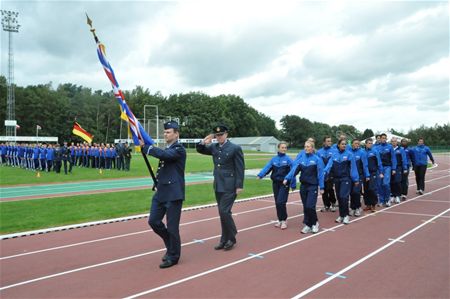In atletiekstadion De Veen was vandaag het Engels de voertaal, want daar hadden de 'Allied Air Forces Athletics Championships' plaats. Zeg maar de ateliekkampioenschappen voor de luchtmacht van verschillende NAVO-landen. Atleten van de luchtmacht van België, Duitsland, Verenigde Staten, Nederland, Polen en Groot-Brittannië namen het tegen elkaar op in verschillende atletiekdisciplines. Daarbij werd op een bijzonder hoog niveau strijd geleverd, met bijzonder scherpe tijden en prestaties. De spelen werden geopend en afgesloten met een militair défilé, waarbij de atleten paradeerden voor de militaire hoogwaardigheidsbekleders en ook de nationale hymnes werden gespeeld. Bij de mannen wonnen de Duitsers voor de Britten en de Belgen. De Amerikaanse vrouwen waren de sterksten voor de Duitsers, en de Britten. De Belgische dames eindigden zesde.(Meer foto's van Michiel Reynders)