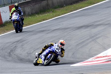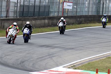 Bij de IDM op Circuit Zolder zijn vandaag de eerste races afgewerkt. De eerste wedstrijd van de Supersport 600 werd gewonnen door de Nederlander Rob Hartog op een Kawasaki. Hij had een zucht voorsprong op de Oostenrijker Thomas Gradinger en de Duitser Max Enderlein, beiden op een Yamaha. Een andere Yamaha-rijder, Arne De Wintere, was met zijn 12de plaats de enige Belg. Ook de rijders van de Supersport 300 mochten voor hun eerste race aan de start, op één na allemaal Yamaha-rijders en vooral Nederlanders. Toch won een Duitser: Maximilian Kappler hield aan de meet net geen 2 seconden voorsprong over op Nederlander Joep Overbeke en diens landgenoot Kevin Mijwaart. Bij de zijspannen was de eerste zege voor het Zwitserse team Schlosser, dat een flinke voorsprong had op het Nederlandse Team Streuer Daalhuizen en het Duitse AKW Kretzer Racing PSV Wels. Het podium was volledig Suzuki gekleurd. (meer foto's van Marcel Gybels)34816