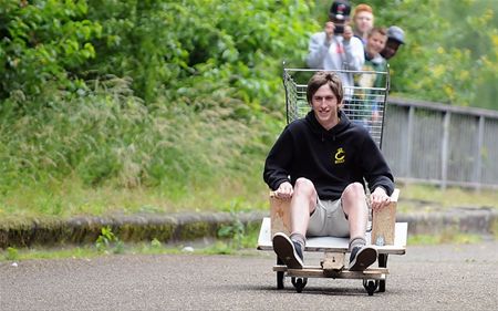 De zeepkistenrace die de jeugdraad vandaag op de Weyermanbrug in Boekt organiseerde, was andermaal een spektakelstuk. De deelnemers toonden zich bijzonder creatief want ze kwamen met de meest uiteenlopende racebolides aan de start. Er werd al eens gecrasht - gelukkig zonder erg - maar er waren er ook die tegen een rotvaart naar beneden suisden. (meer foto's van Davy Neuteleers) 13471