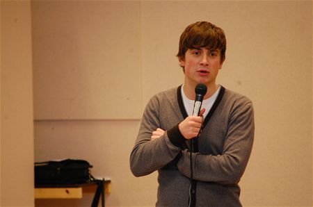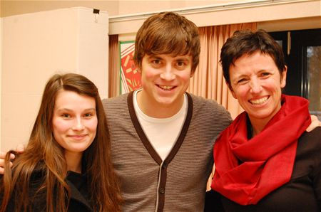 Niels Destadsbader was vandaag te gast in het Sint-Franciscuscollege. Niels is zoals bekend de peter van de Damiaanactie en het is nu eenmaal normaal dat een hippe acteur en zanger bij jongeren beter een boodschap kan overbrengen. De Damiaanactie bestrijdt nog altijd lepra, tbc en leihsmaniasis, ziektes die nog volop aanwezig zijn in Afrika, Azië en Amerika. Daarvoor zijn middelen en steun nodig en het is de bedoeling ook jongeren daarvoor te sensibiliseren. (foto's Patrick Daniëls)12593