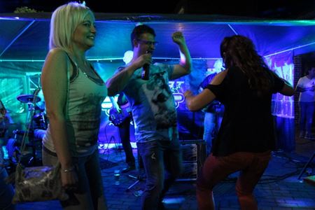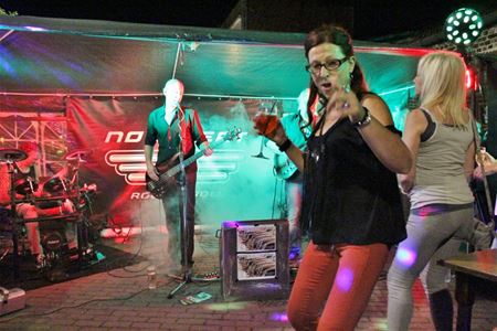 Ambiance gisteravond in Zolder-Centrum waar café 't Kuipke zijn 9de verjaardag vierde, onder meer met een optreden van de coverband No Sweat. Die begon rond 22 uur aan zijn optreden maar het feestje was van korte duur. Net toen iedereen begon warm te lopen, kwam de politie het optreden stilleggen na een klacht uit de buurt. Er zou een vergunning geweest zijn, maar die bleek onvindbaar. Plaatsvervangend burgemeester Lode Schops gaf toestemming om door te gaan tot middernacht. Daarna verplaatste het feest zich noodgedwongen naar binnen, waar het wel verder kon doorgaan tot een gat in de nacht. (foto's Tony Sempels)22306