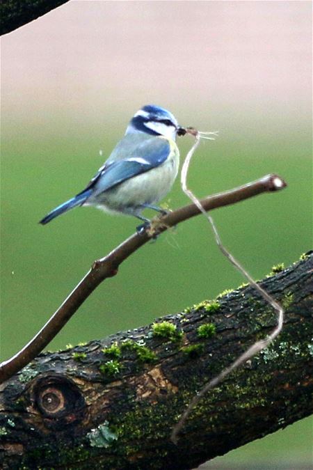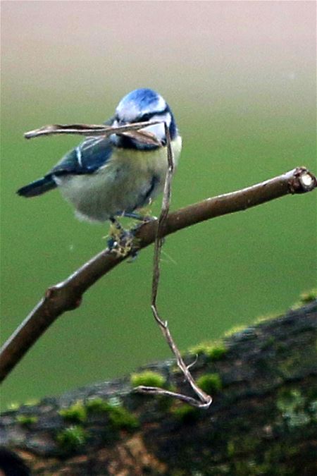 Heel de bouwsector ligt dit weekend zowat stil, maar dat geldt niet voor dit mezenkoppel dat al enkele dagen druk bezig is met de inrichting van zijn nestkast, op hetzelfde moment mos in de poten en dor gras in de bek. En ze krijgen nochtans geen zondagsuren betaald. (foto's Marcel Gybels)20056