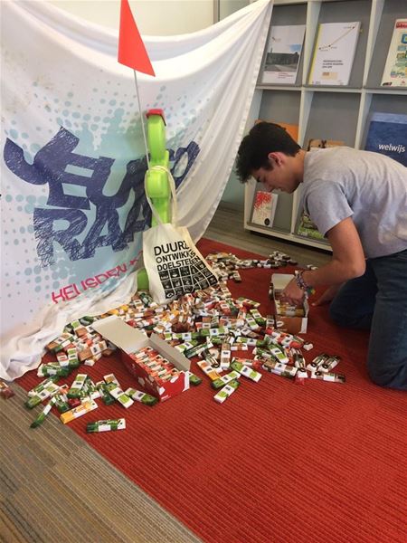 We melden het vanmorgen al, na hun kennismaking en introductie zijn de YOUCA-leerlingen van het collega uitgezwermd over bijna alle diensten van de gemeente. Daar hadden ze vandaag hun handen vol, maar 't was voor iedereen een verrijkende dag, die bovendien geld in het laatje bracht voor het goede doel. (meer foto's van Jana Govarts)35938