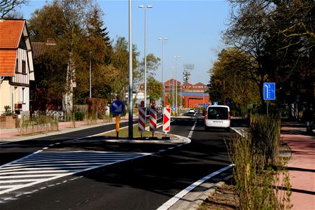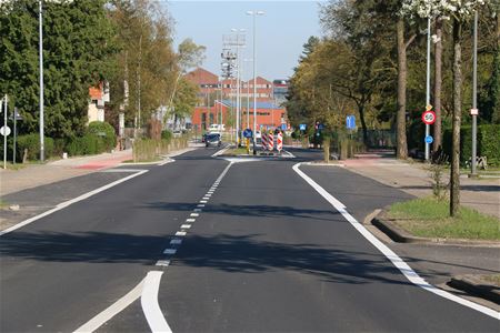 Ook al staat er nog een bordje 'markering ontbreekt' en zijn er nog enkele signalisatiepaaltjes achtergebleven, de belijning op het vernieuwde deel van de Koolmijnlaan is nog volledig afgewerkt. Nu zouden bestuurders ook uit de middenberm moeten wegblijven ... (foto's Marcel Gybels)25038