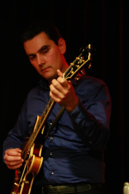 De eerste zondag van de maand en dus mochten de jazzmuzikanten er weer eens een stevige lap op geven in het Muzecafé. Marco Cirone bracht David DeMuynck, Rob VanSpauwen en David La Mela en samen produceerden ze en smeltkroes van standards, funk en Sahara, ... (foto's Ria De Clerck) (meer op Aftermuzeclip)23194