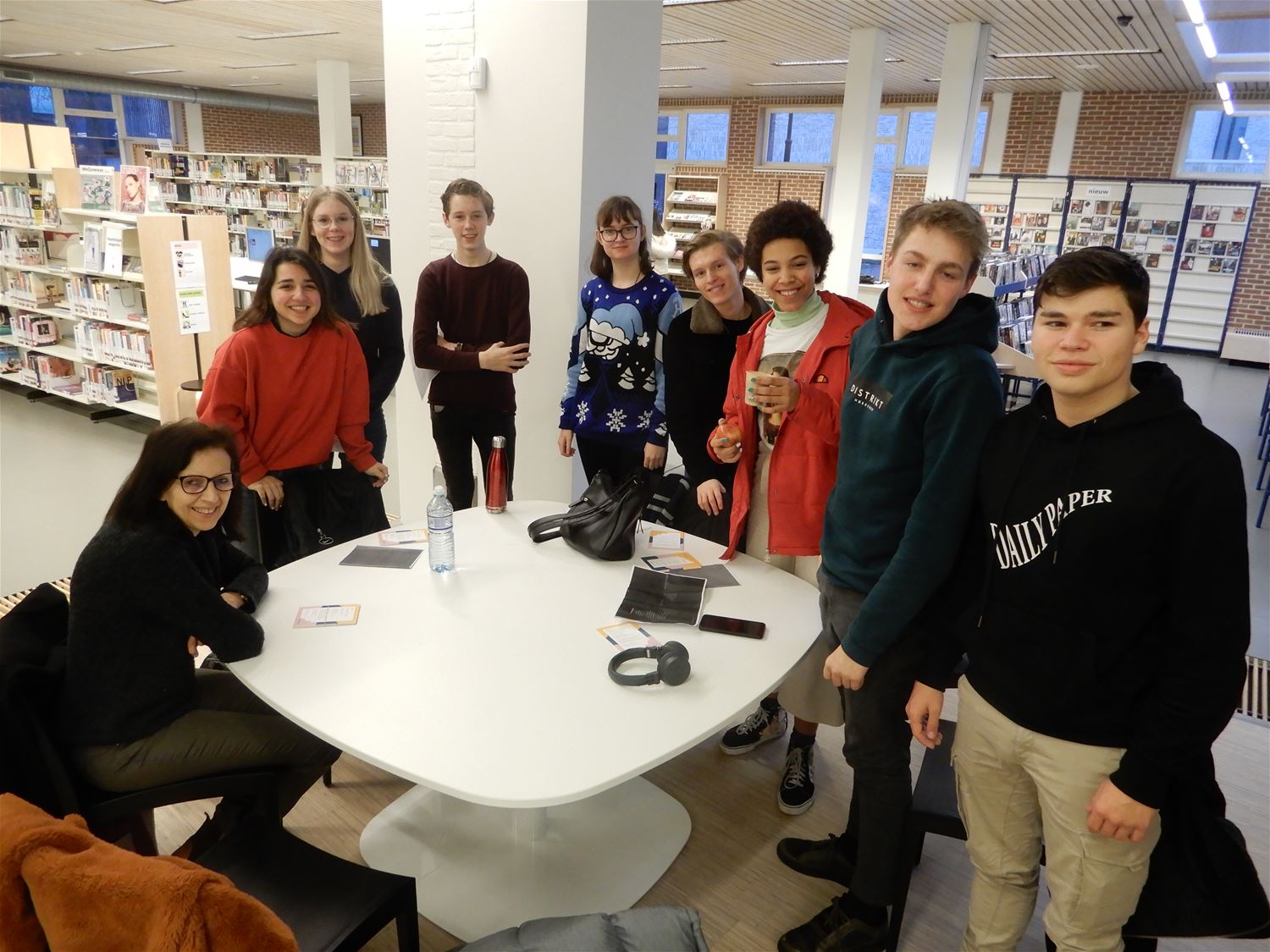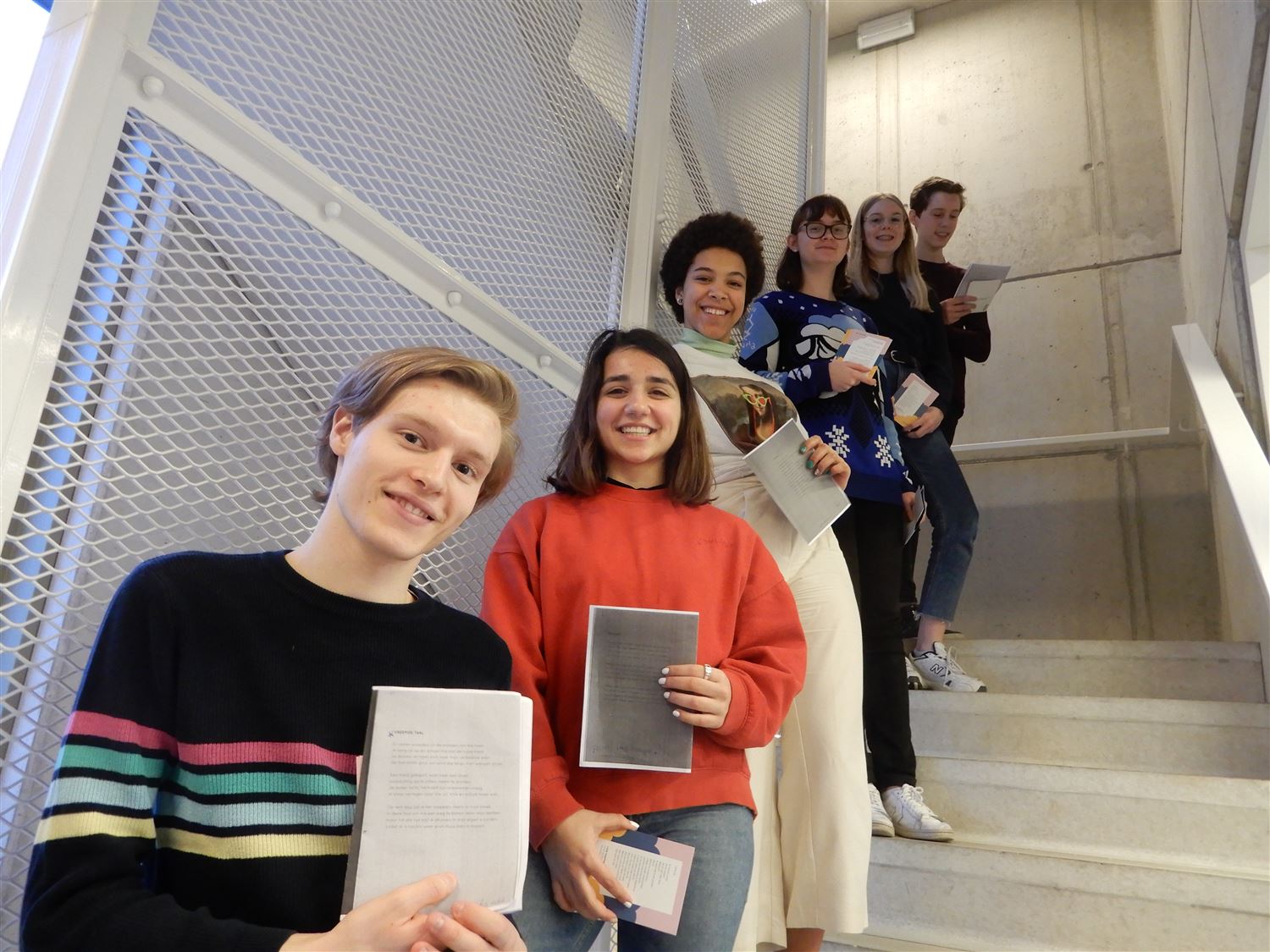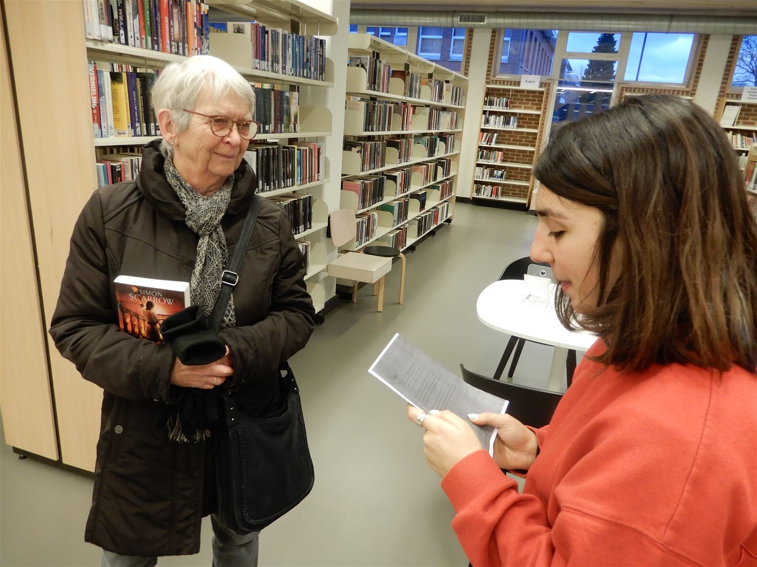 "Mag ik even een stukje poëzie voorlezen, alstublieft?", ook woensdag in de vooravond werden verschillende bezoekers van de bibliotheek verrast met die fijne vraag van leerlingen van de Academie voor Muziek en Woord. Net als hun collega's gisteren waren ze met een aantal mooie gedichten naar de bib afgezakt die op een keurige manier werden voorgedragen. Geef toe, af en toe een vleugje poëzie zou het leven wat meer kleur geven. (foto's Julien Maebe)51629
