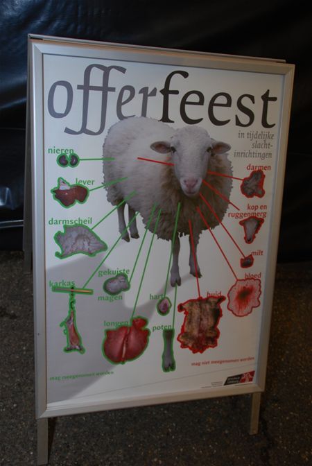 Sinds vanmorgen vroeg worden in het Brancardiershof schapen aangevoerd voor het Offerfeest. Na het gebed in de moskeeën is omstreeks 10 uur gestart met het ritueel slachten van de schapen. Zoals de afgelopen jaren heeft de gemeente nu ook weer een slachtvloer uitgebouwd in tenten, waarin erkende kelers aan het werk zijn. Er zijn containers aangevoerd voor het afval. Tot gisteren waren er in het gemeentehuis 350 slachtbonnen afgehaald, maar dat kan ook vandaag nog, zij het tegen een hogere prijs. 14297