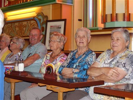 OKRA Heusden maakte een uitstap naar hartje Brabant in Nederland. Eerst werd een struisvogelboerderij nabij het vliegveld van Gilzerijen bezocht. Daar werd zelfs een koek van struisvogelei geproefd. In Hilvarenbeek stond het museum Dansant op het programma, waar de baas het gezelschap met veel humor loodste door de muzikale geschiedenis van het draai- en kermisorgel tot de alom bekende 'De Cap' orgels. Terwijl hapjes en drank werden genuttigd, klonk nostalgische muziek op de achtergrond, en er werd zowaar gedanst als weleer in de kermistent. (foto's Maurice Mues)22206