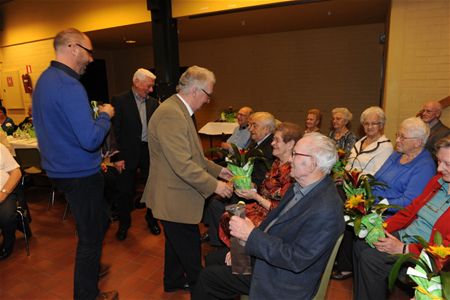 In 't Kuipershof hield OKRA zijn jaarlijkse feest. Daarbij hadden voorzitter Maurice Mues, secretaris Mia Biesmans en penningmeester Leon Truyers liefst 40 van de 50 jubilarissen te vieren. Ze kregen de hulp van pastoor Geert Croes om bloemen of een fles wijn te overhandigen aan 80-, 85- of 90-jarigen. Na de viering was er ontspanning met 't Lachement: Belgisch en Europees accordeonkampioen Tony Decora die zanger Francis Guntler muzikaal begeleidde. Een voltreffer want de 185 aanwezigen bleven meezingen tot de laatste noot. (meer foto's van Lowie Gielis)