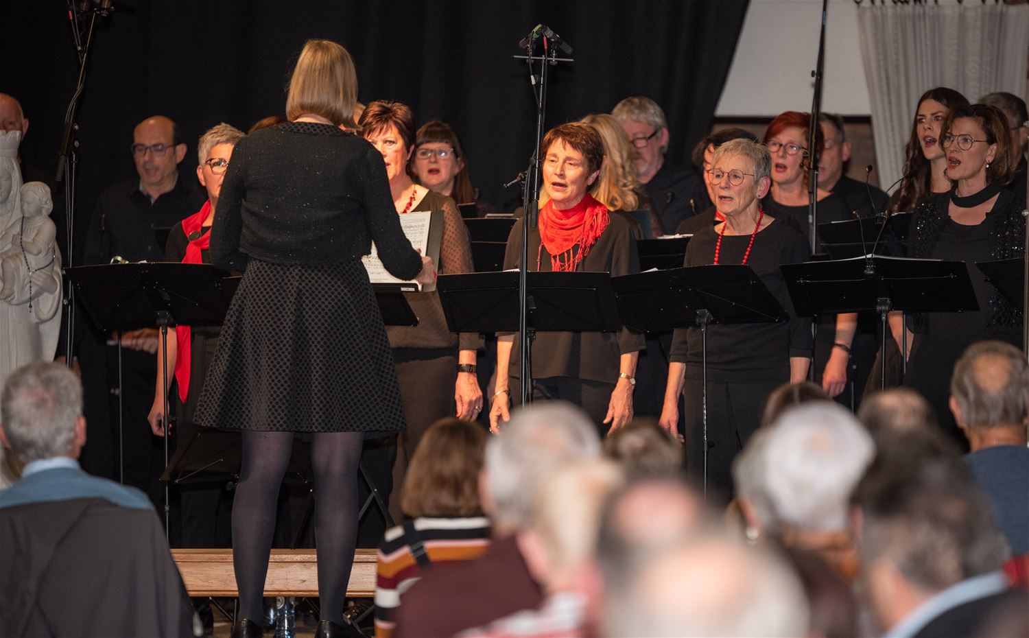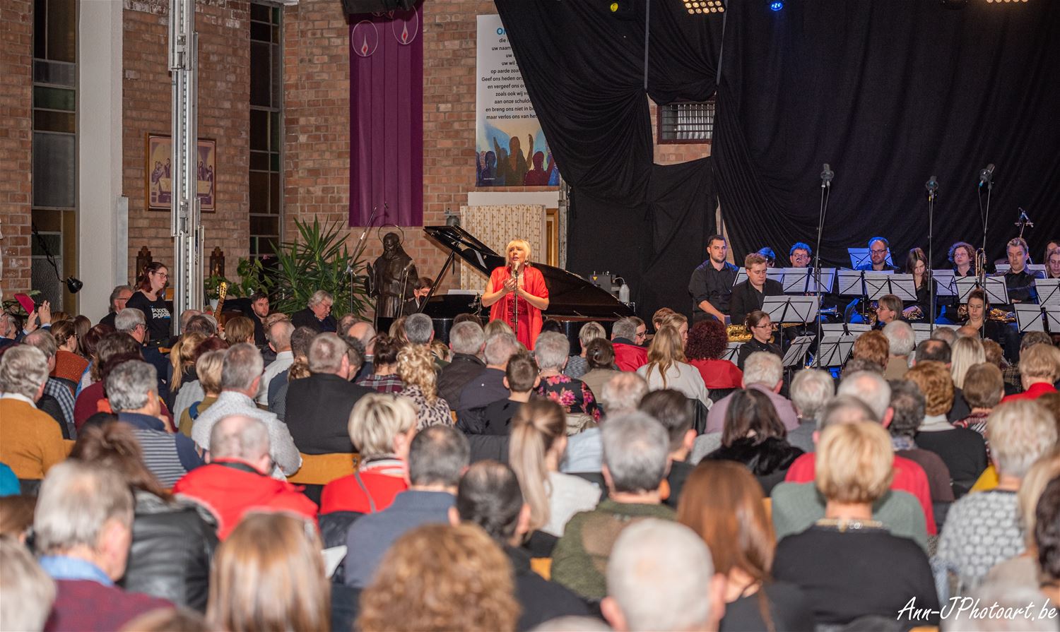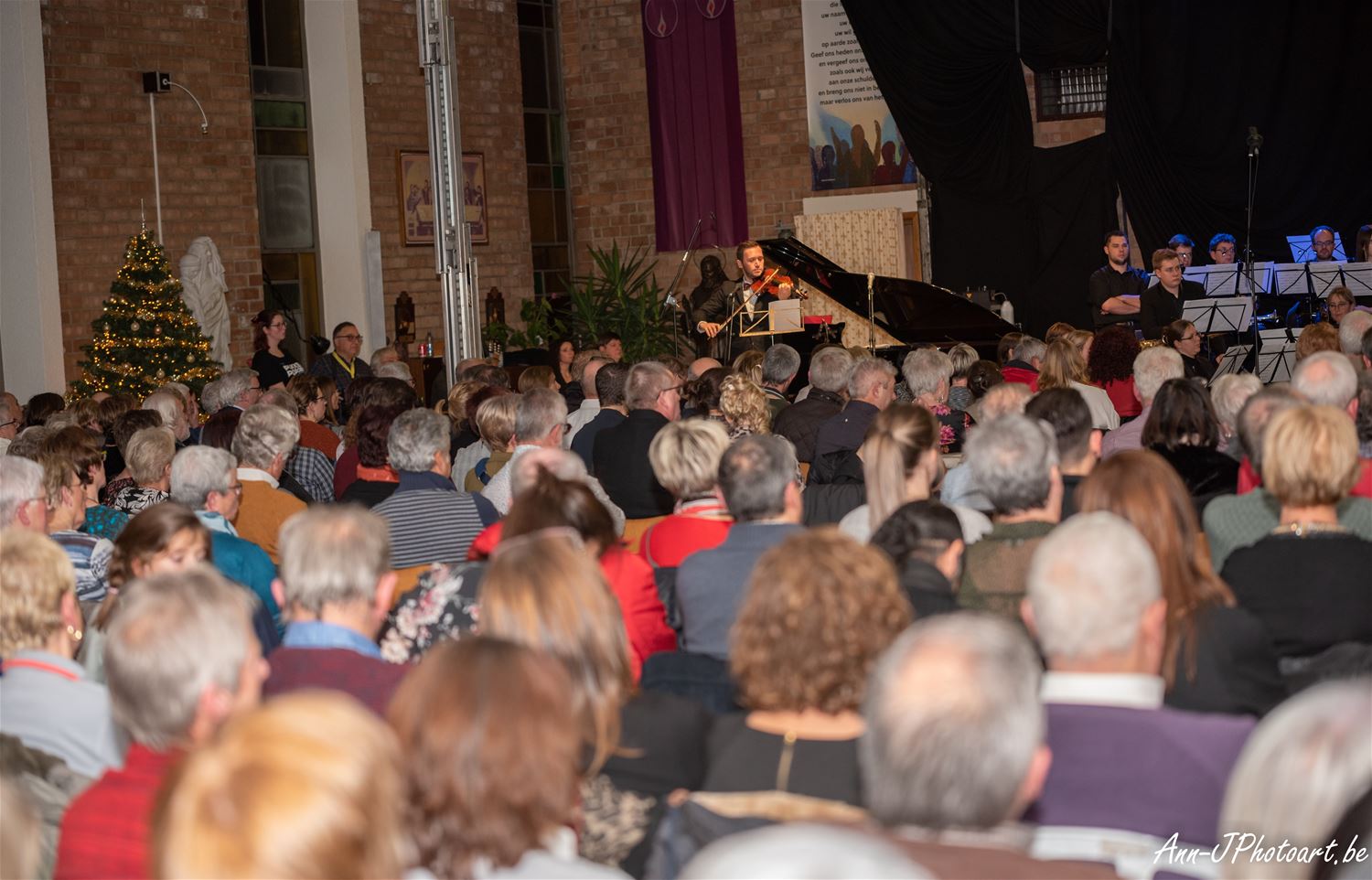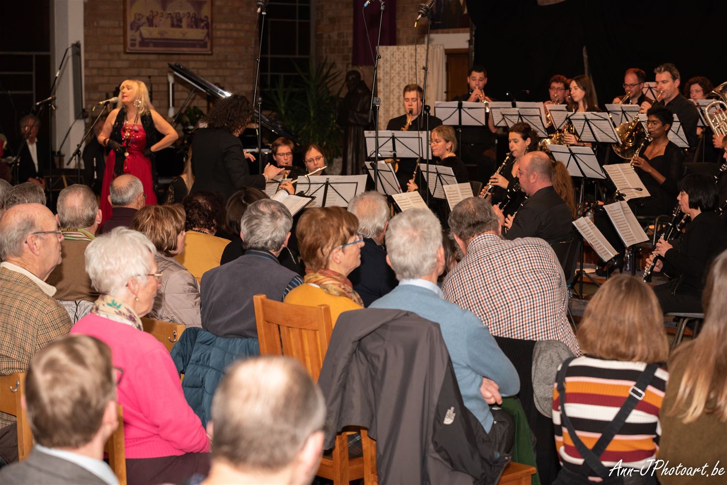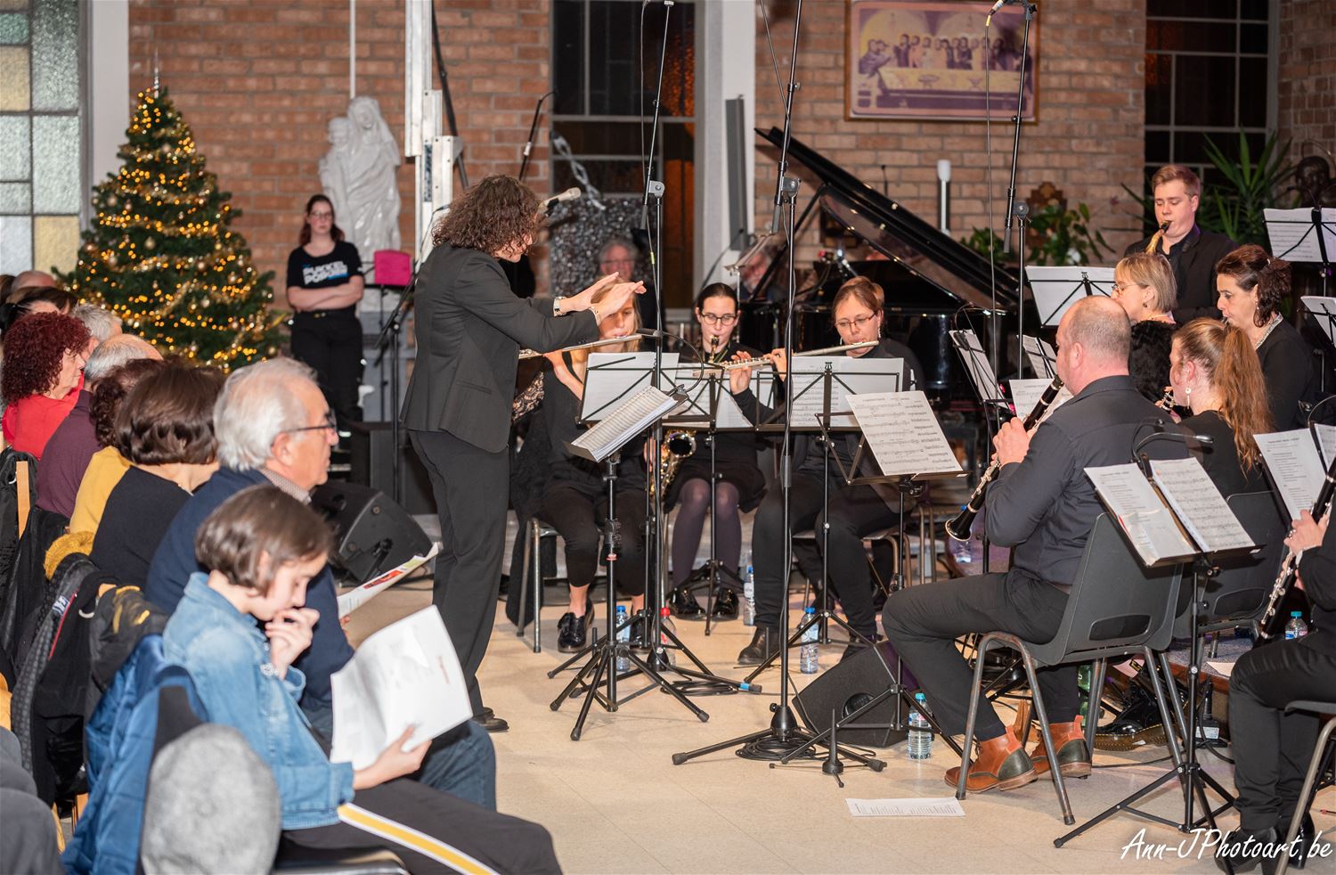 Heel wat Lindemanbewoners kwamen naar de kerk afgezakt zaterdagavond voor het kerstconcert. Na het welkom door François Didden startte het Kerst-Proms-concert. Het koor Voicelab onder leiding van Elysa Marx en de Koninklijke harmonie De Eendracht van Meulenberg geleid door Graziana Buzzerio wisselden elkaar mooi af. De solisten Erica Fronczyk (sopraan), Yuli Lavrenov (piano), Lorin Lara (viool) en muzikale AMCLI voorzitter-zanger Pino Falsone gaven een extra dimensie aan het concert. Allen samen bracht ze aan het eind van het eerste deel samen het bekende Habenera uit ‘Carmen’ van Bizet. Het publiek genoot. Net als nadien van de specialiteiten die geserveerd werden op het kerstmarktje bij La Baracca, daar konden ze ook een kerstaankoop doen voor het goede doel. (foto's Ann Jordens)