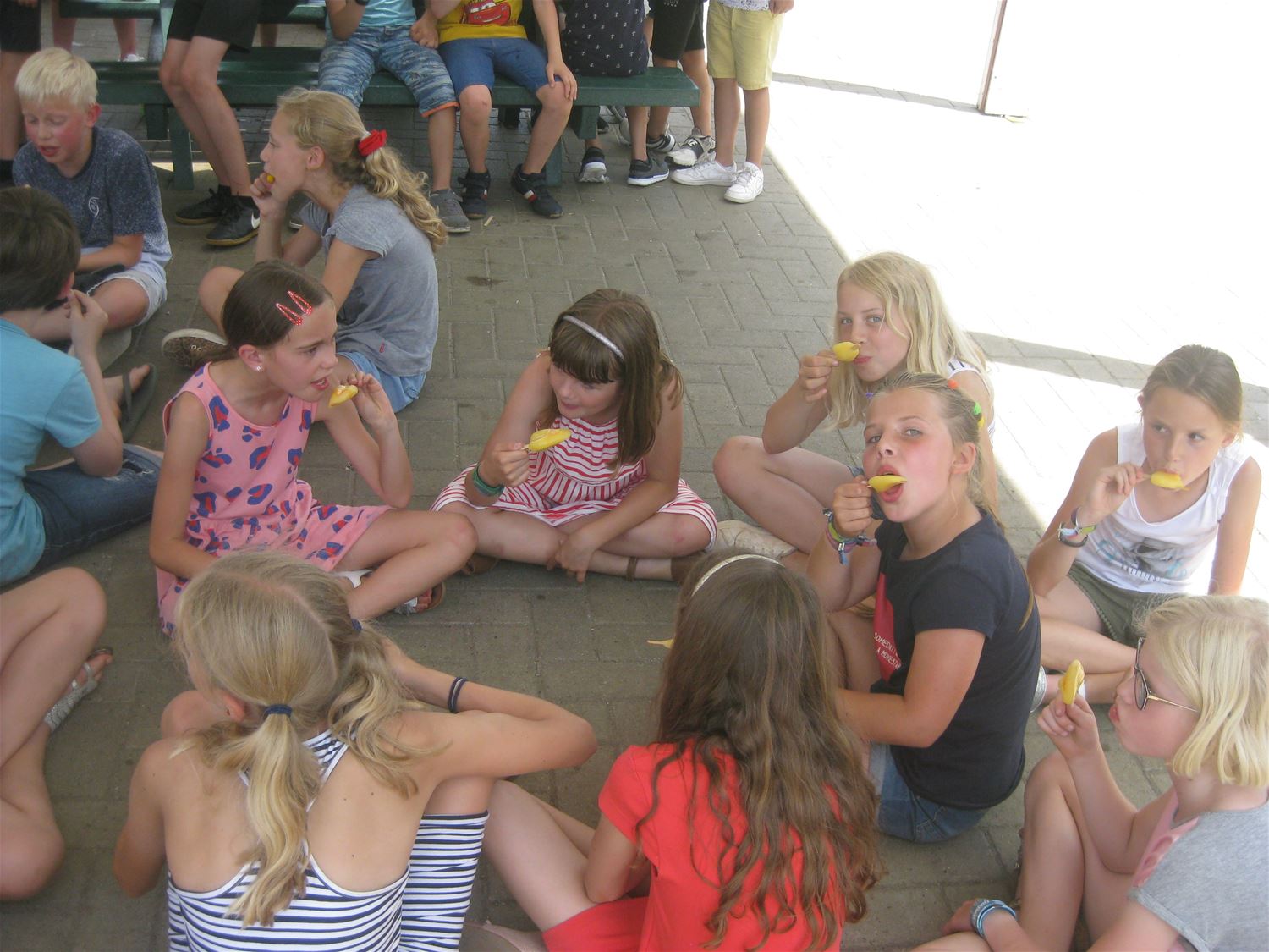 Uiteraard vergt de hitte ook in de scholen enkele maatregelen. Zo moedigt bijvoorbeeld de directie van ’t Molenholleke de leerkrachten aan om schaduw op te zoeken en met de leerlingen naar het bos te trekken. En ook de waterpistolen zijn nu welkom op school. Elke leerling wordt ook verkoeld met een waterijsje. (foto’s Rita Grosemans)