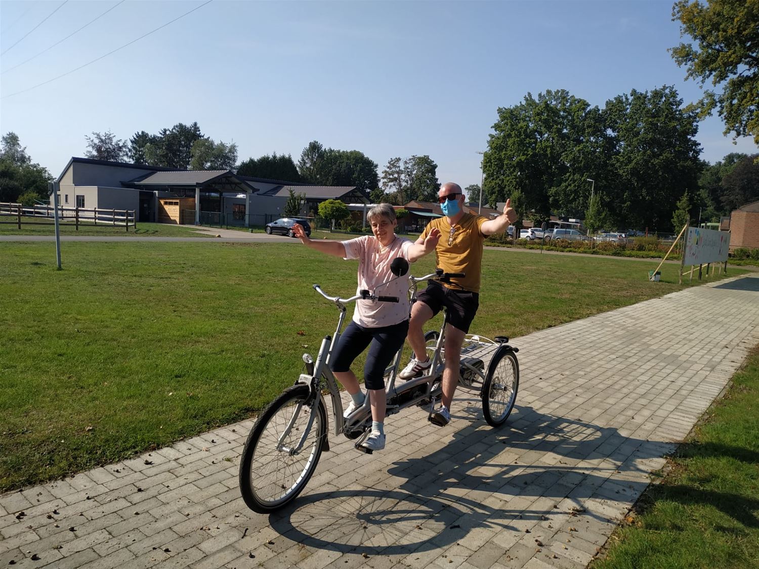 ’t Weyerke heeft nood aan een nieuwe elektrische rolstoelfiets. Dat is een kostelijke aankoop en nu corona een streep heeft getrokken door veel benefietacties besloten vier therapeuten om zelf op de fiets te springen en zo de nodige middelen in te zamelen. En dus fietsen Gwendoline, Saartje, Charlotte en Hanne nu zaterdag helemaal van de zee naar Zolder met 2 duofietsen, liefst 200 km. Het is uiteraard de bedoeling dat hun tocht gesponsord wordt en dus vragen ze een gift op het rekeningnummer van ‘t Weyerke BE 32-0013-0191-4802 met mededeling ‘rolstoelfiets’. Interessant om te weten is dat de belastingvermindering voor giften vanaf €40 aan erkende instellingen dit jaar verhoogd wordt van 45% naar 60%. Op dit ogenblik is al zowat de helft van het nodige geld binnen, de actie zal pas stoppen als de financiering rond is want die fietsen zijn echt belangrijk voor de gasten van 't Weyerke. Zaterdag om 4 uur 's morgens vertrekken de fietsers in Blankenberge en ze worden tussen 17 en 18 uur verwacht op 't Weyerke. Op dat ogenblik zijn andere therapeuten daar 'in de ether' met Radio Weyerke. Die is tijdens de coronacrisis ontstaan om een gevoel van verbinding te kunnen creëren tussen de verschillende afdelingen en leefgroepen in de periode dat ze noodgedwongen gescheiden werden van elkaar. Ook morgen is er trouwens al een fietsmarathon op het domein, met ook een creativiteit en een actie frietjes bakken.