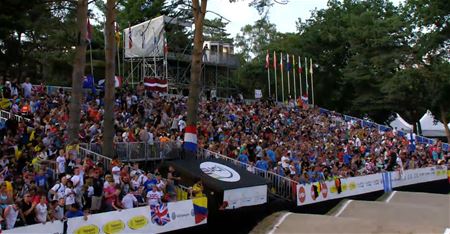 Op de eerste wedstrijddag van de wereldkampioenschappen BMX was de opkomst al meteen enorm groot. De tribunes zaten afgeladen vol en er heerste een enorm ambiance. Truitjes en vlaggen benadrukten de internationale samenstelling van het publiek en het deelnemersveld, de supporters moedigden hun landgenoten allemaal voluit aan.22130