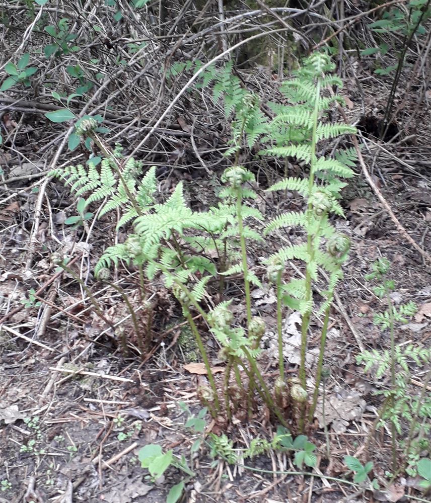 Jeannine Eerdekens en Roger Quetin maakten deze namiddag een wandeling op de route van de loopomlopen blauw en groen. De blauwe route, die in Heusden loopt, namen ze voor de spoorovergang in de Schaapsweg. Een eind verderop konden ze overstappen op de groene route, die in Beringen loopt, met mooie bospaden. Daar zijn de varens zijn zich nu volop aan het 'ontrollen' .