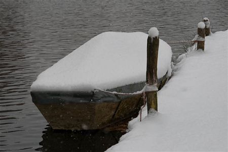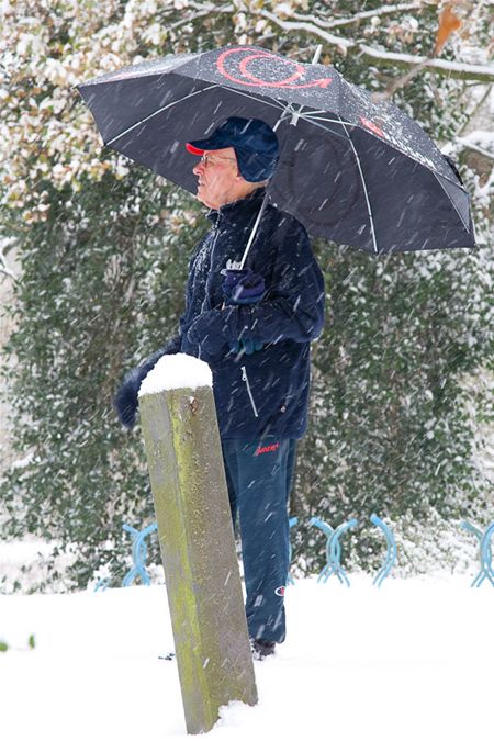 Gust Ischen maakte een winterwandeling van Eversel naar Boekt. Hij ontmoette er onder meer een man (op de foto met de paraplu) die zijn 80ste verjaardag vierde met een mooie wandeling. 6393