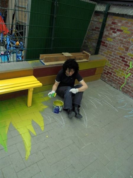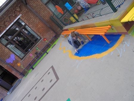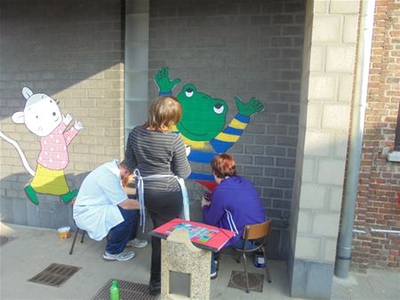 Paasvakantie of niet, de kleuterjuffen van De Toverfluit in de Brugstraat hebben samen met wat helpende handen de speelplaats eens flink onder handen genomen. Nieuwe kleuren, nieuwe figuurtjes, nieuwe materialen en nieuwe bankjes. Het waren lange, intense werkdagen maar het resultaat is schitterend. En nu maar popelen tot aan de eerste schooldag na de vakantie om de gezichtjes van de kleuters te zien …. (meer foto’s van Wendy Castro)20088