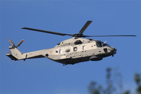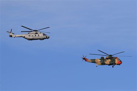De reddingshelicopters van het Belgische leger vlogen voormiddag over Heusden-Zolder op weg naar Sanicole. Enerzijds de Seaking, gekend van de reddingsopdrachten aan en op zee en de serie Windkracht 10, en daarnaast de gloednieuwe NH-90 die het de komende periode stilaan overneemt van de Seaking. Beide komen van de luchtmachtbasis in Koksijde. (foto's Marcel Gybels)22695