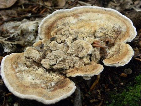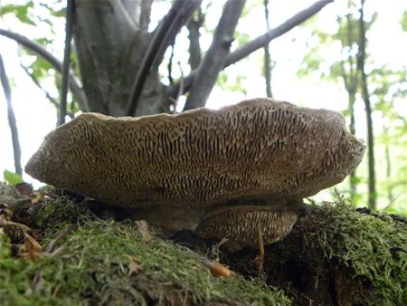 De doolhofzwam of daedalea quercina heeft zijn naam niet gestolen, want de onderzijde heeft een grove, doolhofachtige structuur (zoals een labyrint). Het vruchtlichaam is hard en kurkachtig. Deze zwam komt voor op dikke stammen en stronken van loofbomen. De foto is genomen door Stefan Was langs de hoofddreef van de bossen Van Soest, richting Speelhuisje11738