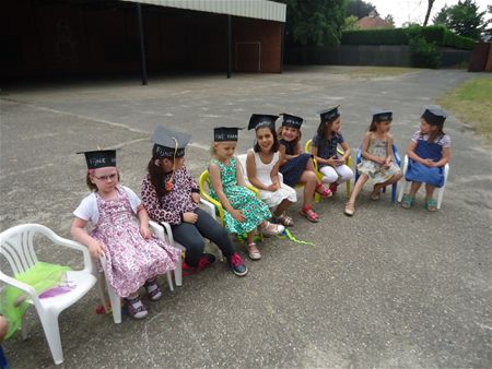 Ook in de kleuterschool Pagadder in Berkenbos hebben de kleuters in stijl afscheid genomen. Ze kregen niet alleen hun diploma maar gaven net als de juffen enkele optredens. (foto's Leentje Elsen)16480