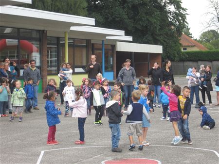 In kleuterschool Pagadder sprongen de kleuters letterlijk het schooljaar in. Bij het binnengaan van de poort stond al een trampoline voor hen klaar. Springen op het springkasteel, dansen en springen op muziek, ... leuke boel daar om het schooljaar in te zetten. (foto's Leentje Elsen)22545