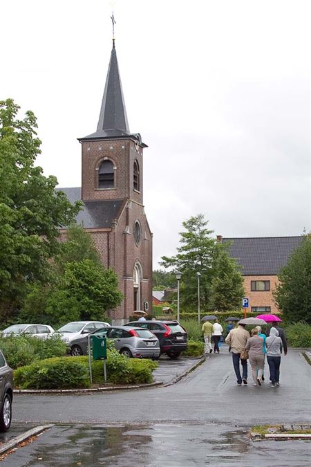 25 juli vandaag en dat is het naamfeest van Sint-Jacobus, de patroonheilige van Parochie Eversel. Daar vond vandaag een bijzondere viering plaats van het Compostelagenootschap-Vlaanderen. Dat legt zich toe op de verering van St Jacobus en het geeft alle informatie aan pelgrims die de tocht - de Camino - naar Compostela overwegen. De groep bestaat 30 jaar en viert elk jaar de feestdag van St.-Jacobus ergens in Vlaanderen in een St.- Jacobuskerk. Ditmaal dus in Eversel. Tegelijk organiseerde Pelgrimspastoraal Bisdom Hasselt pelgrimswandelingen vanuit Bolderberg en Zolder. De moedige wandelaars lieten zich niet afschrikken door regen en wind. Na de misviering verzamelden ze in St-Baaf voor een receptie. (foto's Gust Ischen) 22181