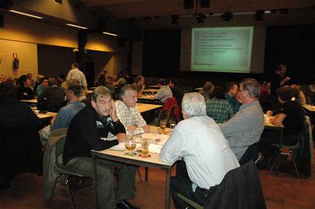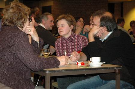 De spanning was vrijdagavond in ' Kuipershof te snijden tijdens de 5de kwisavond van de KWB ten voordele van 11.11.11. 15 ploegen met kleurrijke namen als Golden Girls, Eureka, Wikipadia reageert niet en Plus Minus namen het tegen elkaar op in een nek-aan-nek race. Daarin haalde Plus Minus (foto) het uiteindelijk verdiend.3688